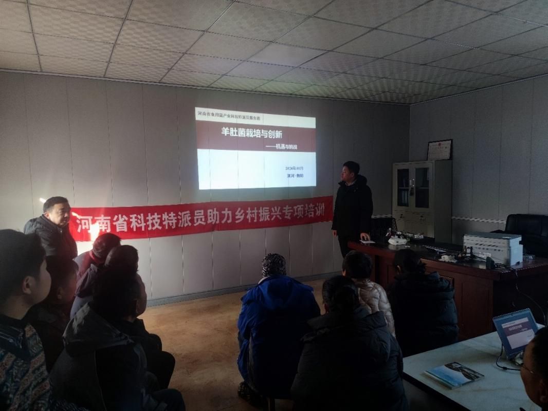 2026年1月23日,河南省食用菌产业科技特派员服务团联合舞阳县科技局、舞阳县农机推广总站在舞阳县开展精准科技赋能产业发展行动,先后深入舞阳县诺金农业科技有限公司、军凯香菇产业园、禾木菌园农业有限公司、河南华宝农业开发有限公司楼宋基地、文晓香菇种植园等生产一线,开展食用菌专项技术培训,指导灭菌制棒接种工艺流程、菌棒注水养棒技术,为当地食用菌产业高质量发展提供保障,助力乡村振兴持续推进。